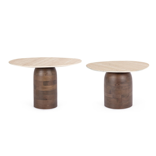 Il Tavolino Yanisha unisce estetica e praticità con un piano in ceramica effetto travertino e una base in legno di mango, ideale per chi cerca eleganza e funzionalità. Questo set di tavolini Yanisha valorizza il soggiorno introducendo calore naturale e un design contemporaneo. Il tavolino design Yanisha si adatta perfettamente sia ad ambienti moderni che rustici, offrendo resistenza e facilità di manutenzione.