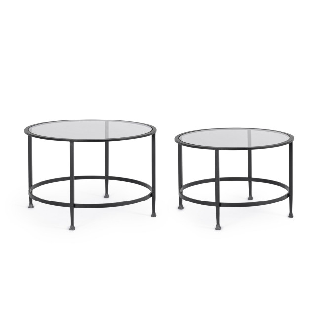 Set di due tavolini Zelena dal design moderno: struttura in acciaio verniciato a polvere e piano in vetro temperato per un tocco elegante, resistente e perfetto nel tuo living.